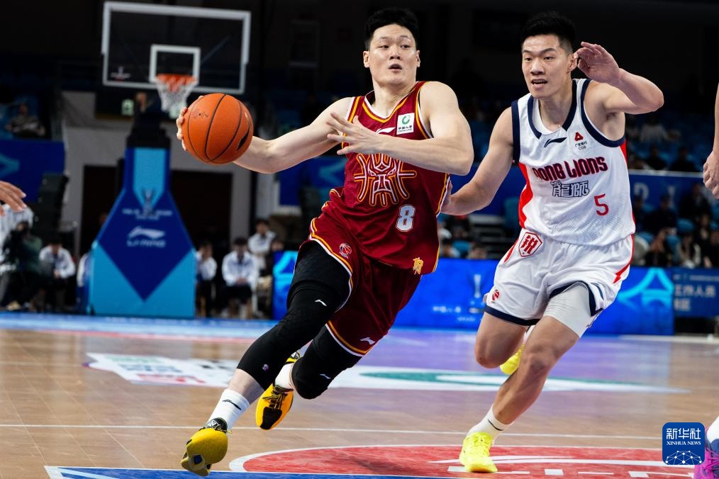 12月7日,山西汾酒队球员刘传兴(左)在比赛中进攻。新华社记者 肖艺九 摄
